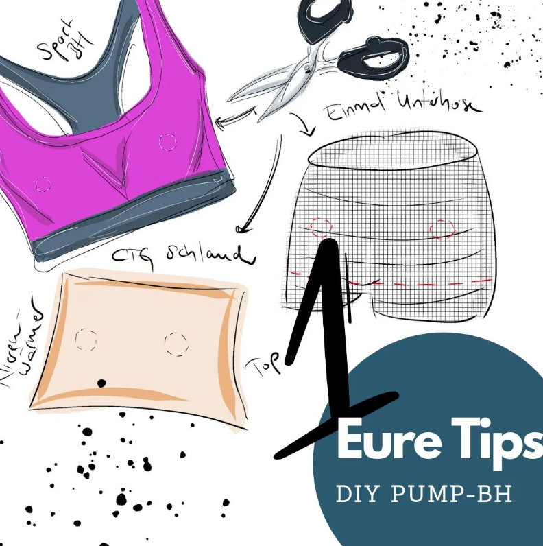 Von Euch genannt wurden gutsitzende, spezielle Abpump-BHs, aber auch eine Reihe von DIY Varianten, die auch noch Geld sparen. Mit Löchern (an den richtigen Stellen natürlich) versehen, eignen sich alte Sport-BHs, etwas größere reguläre BHs, Einmalunterhosen, CTG Schläuche und Gurte, Nierenwärmer oder auch Tops als Pump-BH.