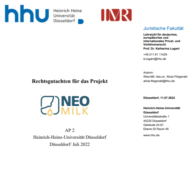 Hier findest du das von der juristischen Fakultät der Heinrich Heine Universität Düsseldorf erstellte Neo-MILK Rechtsgutachten. Das erste Dokument ist die Zusammenfassung des Rechtsgutachtens. Das zweite Dokument ist die Vollversion.