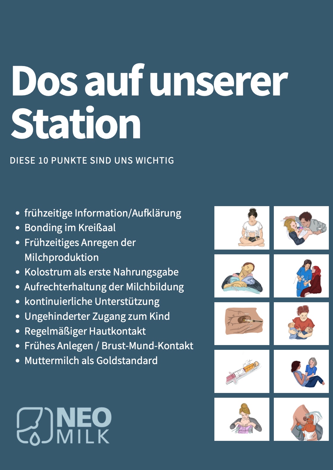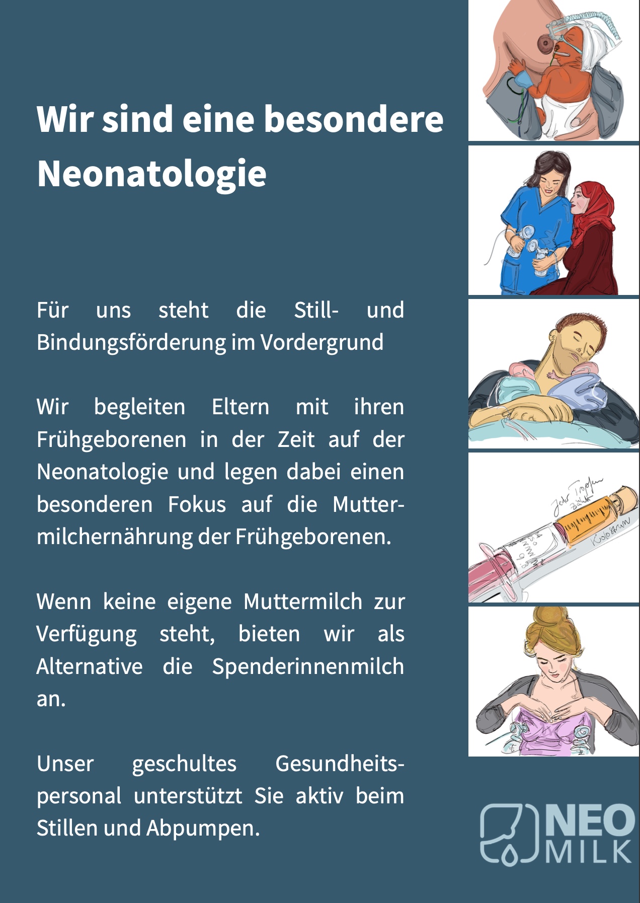 Hinweis: Alle Materialien sind frei verfügbar. Ihr könnt diese gerne auch auf euer Klinik-Design hin anpassen, solange ein Hinweis auf das Projekt Neo-MILK erhalten bleibt und erkennbar ist.