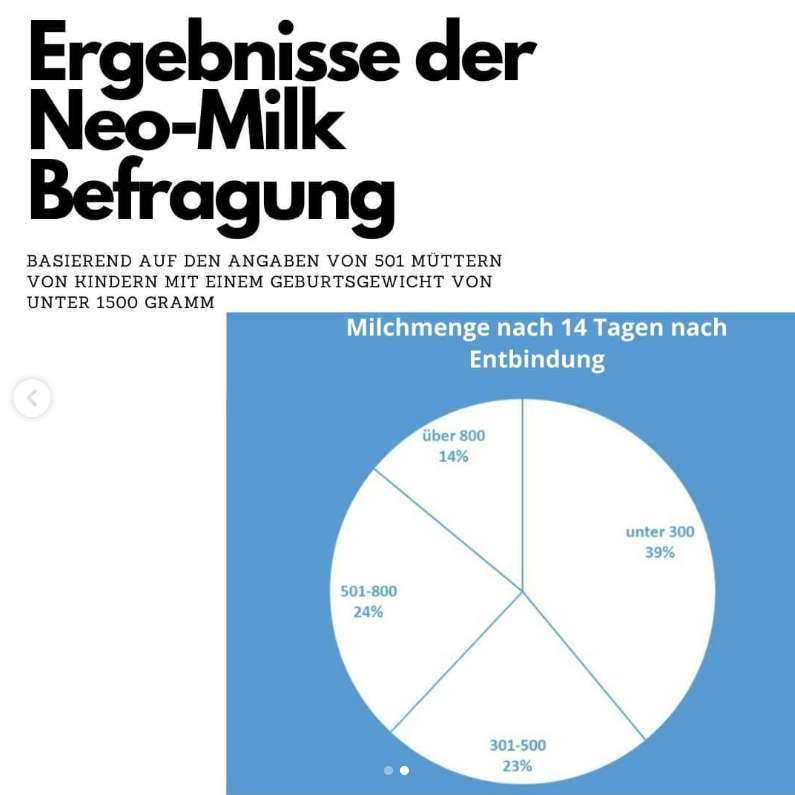 Frühgeborene unter 1500 Gramm deren Mütter am Tag 14 nach Entbindung mindestens 500 ml Muttermilch pro Tag haben, werden eher auch bei Entlassung von der Neonatologie mit Muttermilch ernährt.*