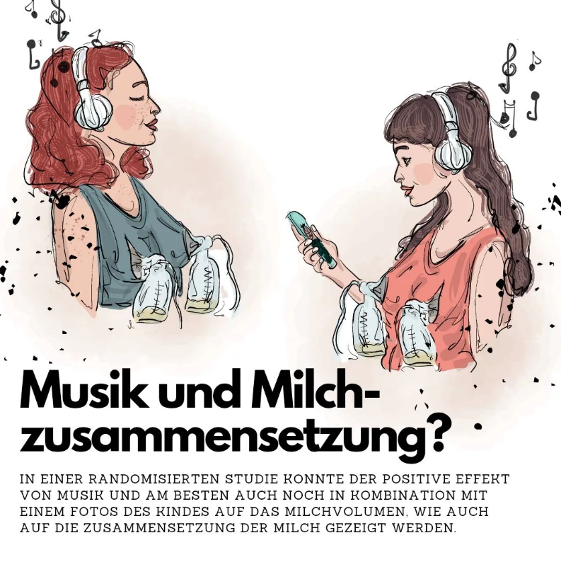 Tatsächlich konnte in einer iranischen Studie gezeigt werden, dass im Vergleich zur Kontrollgruppe Mütter, die beim Abpumpen Musik hören (hier traditionelle iranische Volksmusik) mehr Milch abpumpen konnten. Gesteigert wurde der Effekt durch das zusätzliche Betrachten eines Fotos des Kindes.