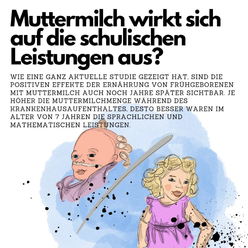 Natürlich sind die schulischen Leistungen nicht das Wichtigste, aber es zeigt wie viel Muttermilch bewirken kann. Dies ist nur ein Effekt den die Ernährung mit Muttermilch hat, von wahrscheinlich vielen, vielen weiteren, von denen wir noch gar nichts wissen.