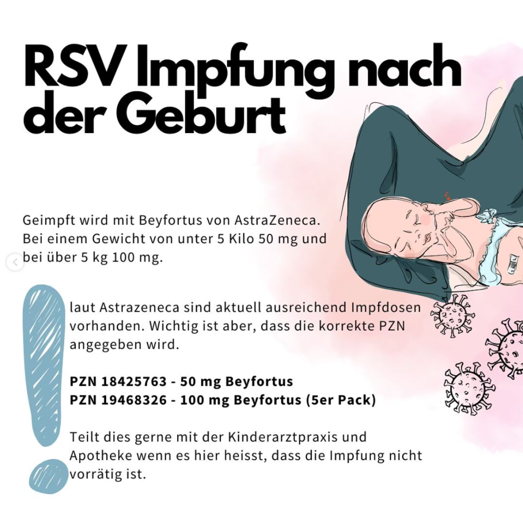 Das RS-Virus sorgt für Atemwegsbeschwerden (Husten, Fieber, Atemnot, aber auch Trinkschwäche oder Erbrechen) und hat in den letzten Jahren immer wieder dazu geführt, dass vermehrt Kinder im Krankenhaus behandelt werden mussten. Besonders gefährdet sind Kinder im ersten Lebensjahr, weshalb es jetzt zu dieser Empfehlung gekommen ist. Die Impfung verringert die Wahrscheinlichkeit einer schweren Infektion um circa 80 Prozent.